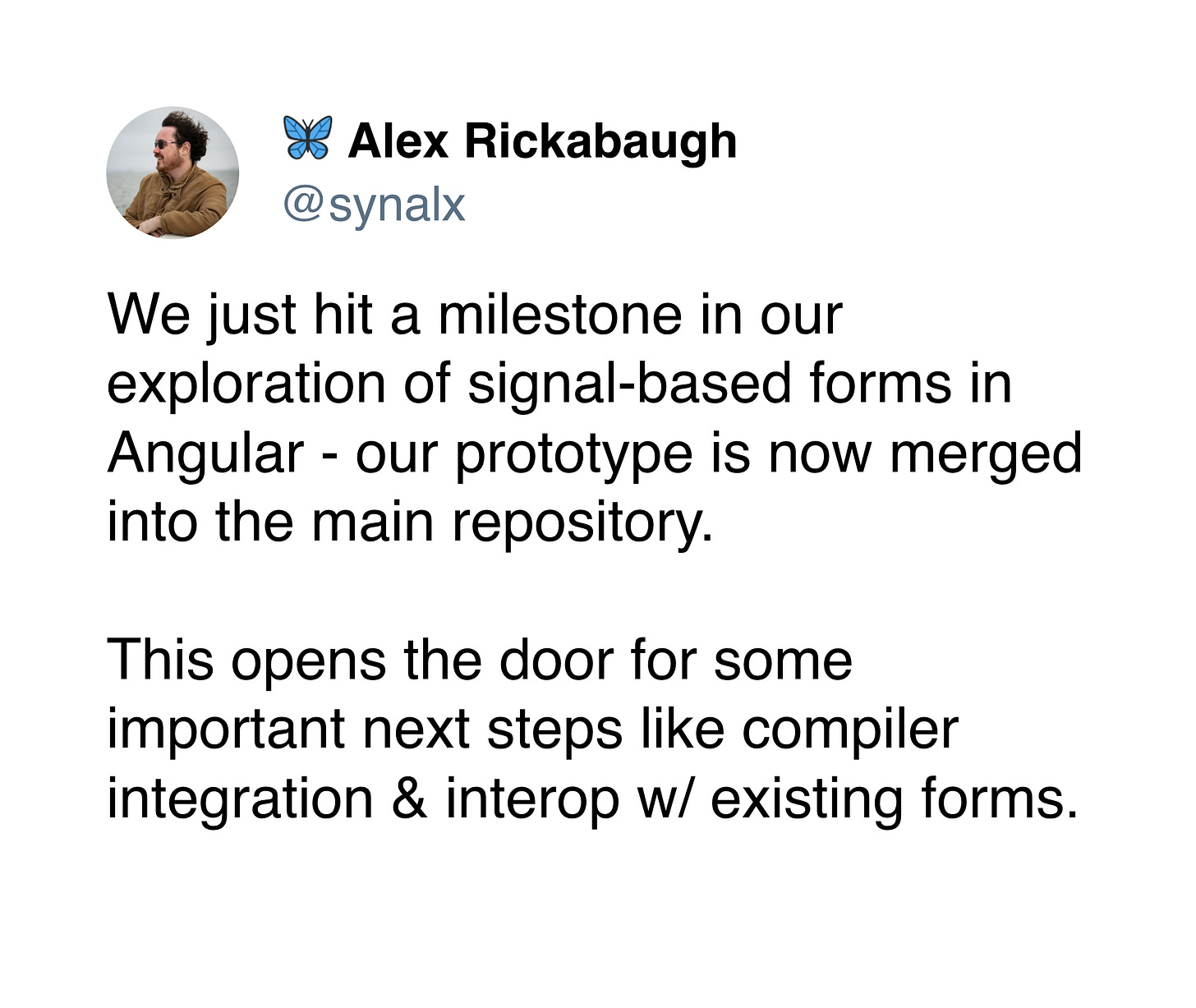 If it’s still a prototype, the Signal Forms API has been merged, previously lying in the experimental-forms branch.